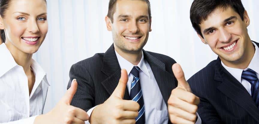 colegas de trabalha fazendo sinal de positivo