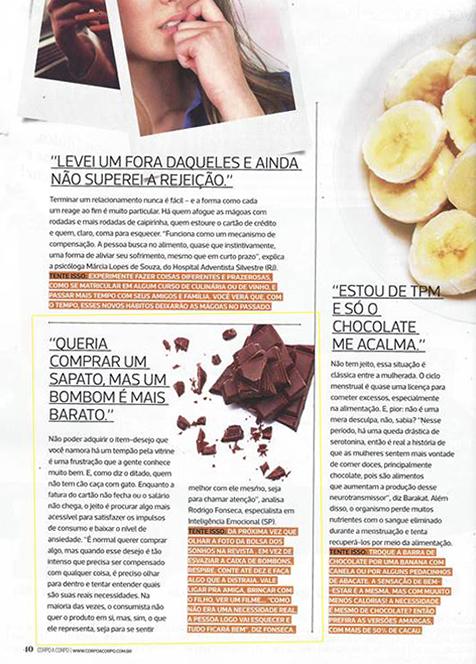 E é exatamente sobre isso que Rodrigo Fonseca, Presidente da Sociedade Brasileira de Inteligência Emocional menciona na revista Corpo a Corpo deste mês: Por que você come?